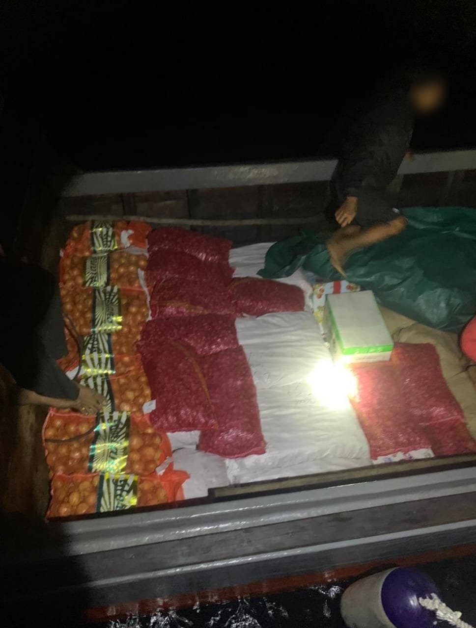 Setelah dilakukan pemeriksaan, petugas menemukan tiga orang awak kapal dan barang muatan berupa ±110 karung bawang, ±11 karung cabe merah, dan ±14 boks daging. Atas temuan tersebut, petugas melakukan penyegelan dan membawa kapal menuju Dermaga Bea Cukai di Tanjung Uncang untuk dilakukan pemeriksaan lebih lanjut.
