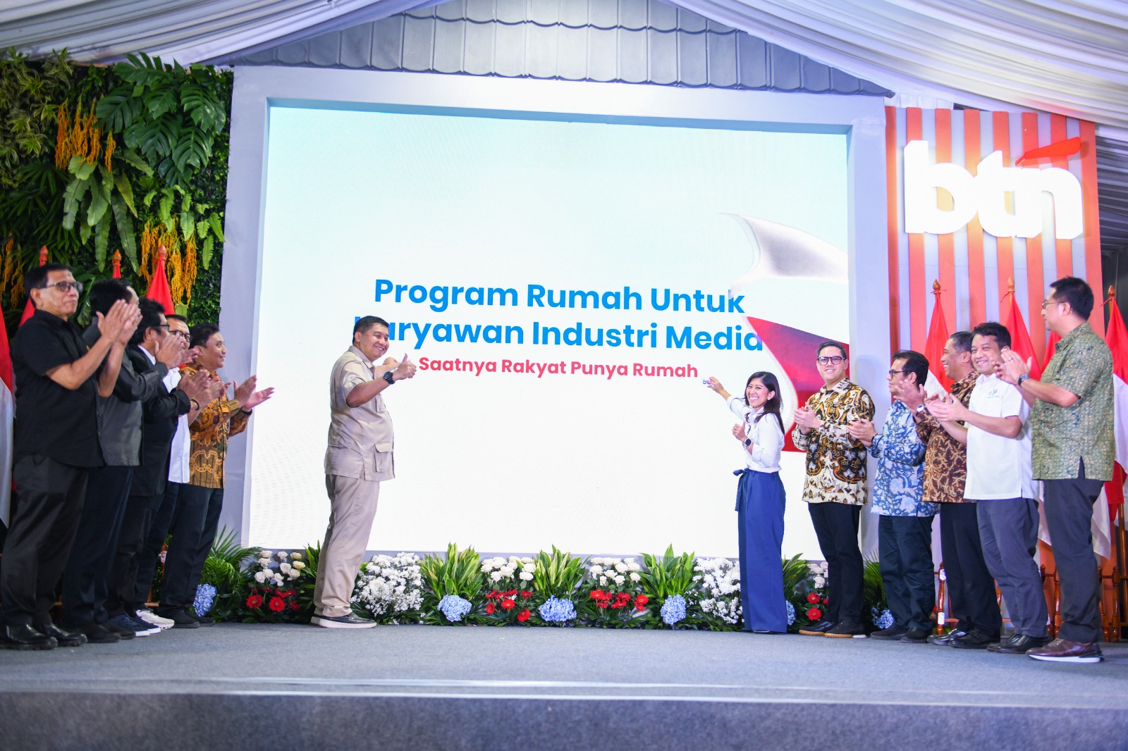 Program rumah untuk karyawan industri media diluncurkan secara resmi di Bekasi, Jawa Barat, pada Selasa 6 Mei 2025 dalam acara yang dihadiri oleh Menteri Perumahan dan Kawasan Permukiman (PKP) Maruarar Sirait, Menteri Komunikasi dan Digital Meutya Viada Hafid, Kepala Badan Pusat Statistik (BPS) Amalia Adininggar Widyasanti, Gubernur Jawa Barat Dedi Mulyadi, Wakil Ketua Komisi 1 DPR RI Dave Akbarshah Fikarno Laksono, Komisioner Badan Pengelola Tabungan Perumahan Rakyat (BP Tapera) Heru Pudyo Nugroho, dan jajaran direksi BTN.