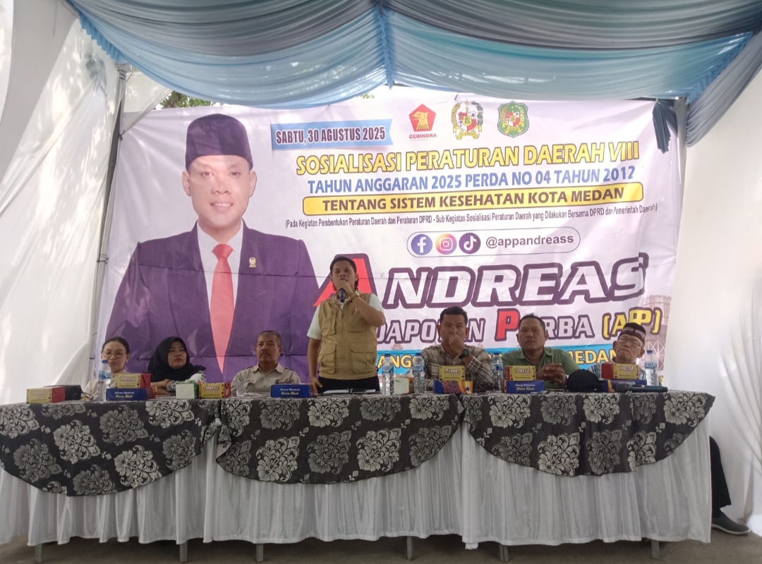 KULITINTANEWS.COM, MEDAN – DPRD Kota Medan kembali menggelar Sosialisasi Peraturan Daerah VIII Tahun Anggaran 2025 Perda No. 04 Tahun 2012 Tentang “Sistem Kesehatan Kota Medan,” Sabtu (30/08/2025) siang.