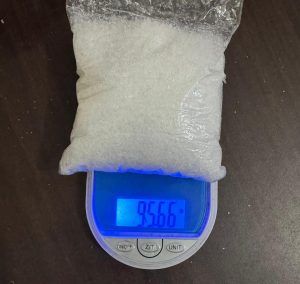 Setelah diperiksa, kotak tersebut berisi satu bungkus plastik bening yang diduga narkotika jenis sabu dengan berat brutto 95,66 gram.