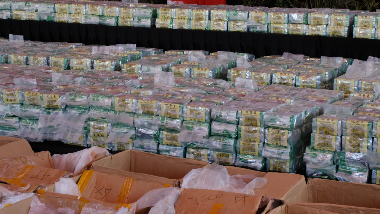 Dari penindakan tersebut, berhasil diamankan enam orang pelaku beserta barang bukti berupa Methamphetamine (sabu) dengan total berat 2 Ton.