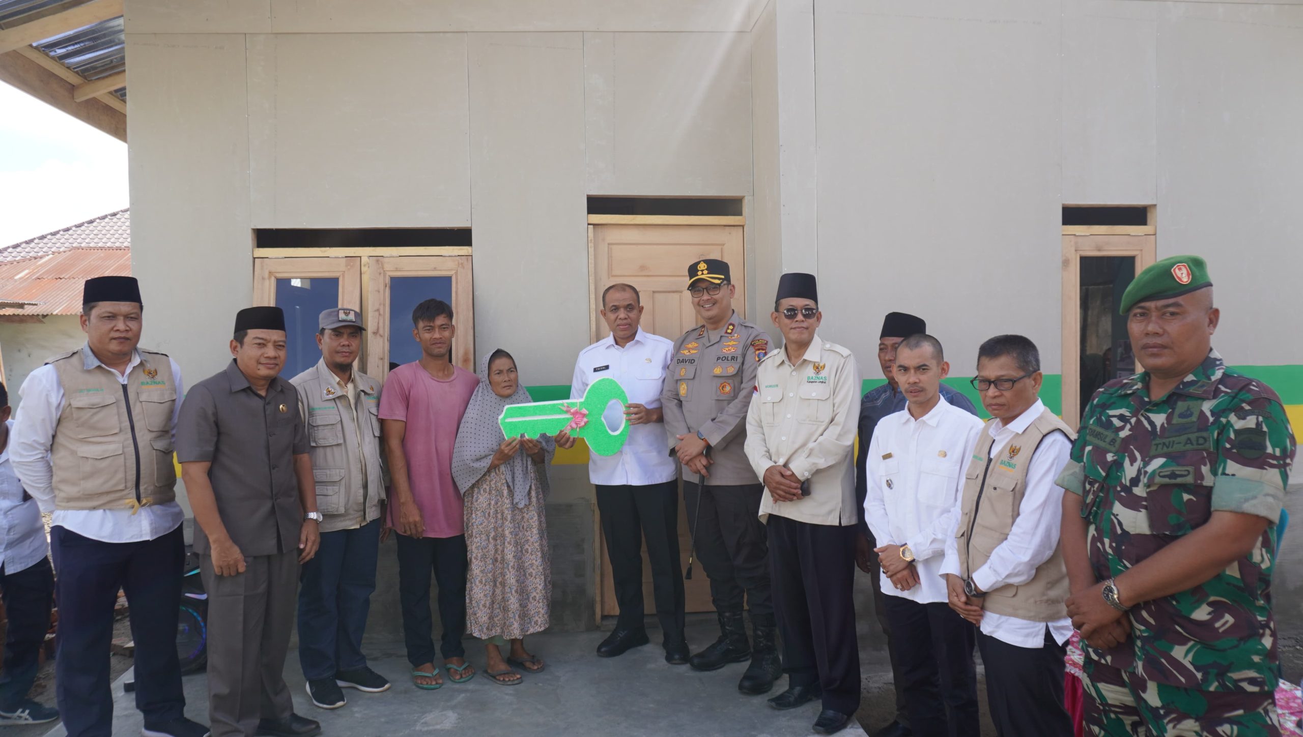 KULITINTANEWS.COM, LANGKAT – Pj Bupati Langkat, Faisal Hasrimy, MAP, Bersama Kapolres Langkat, AKBP David Triyo Prasojo, SH, SIK, MSi, menyerahkan kunci hasil dari Bantuan Baznas kepada salah seorang warga di Jalan Swadaya Dusun III Desa Baru Pasar VIII Kecamatan Hinai Kabupaten Langkat, Rabu (08/01/2025).