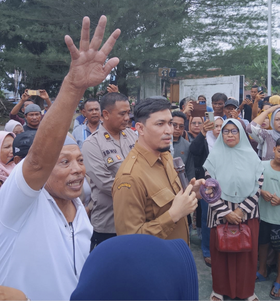 KULITINTANEWS.COM, LANGKAT – Ratusan warga memadati kantor Camat Besitang, Senin (13/04/2026) siang. Kehadiran warga tersebut mempertanyakan bantuan banjir bandang yang baru-baru ini melanda Kecamatan Besitang.