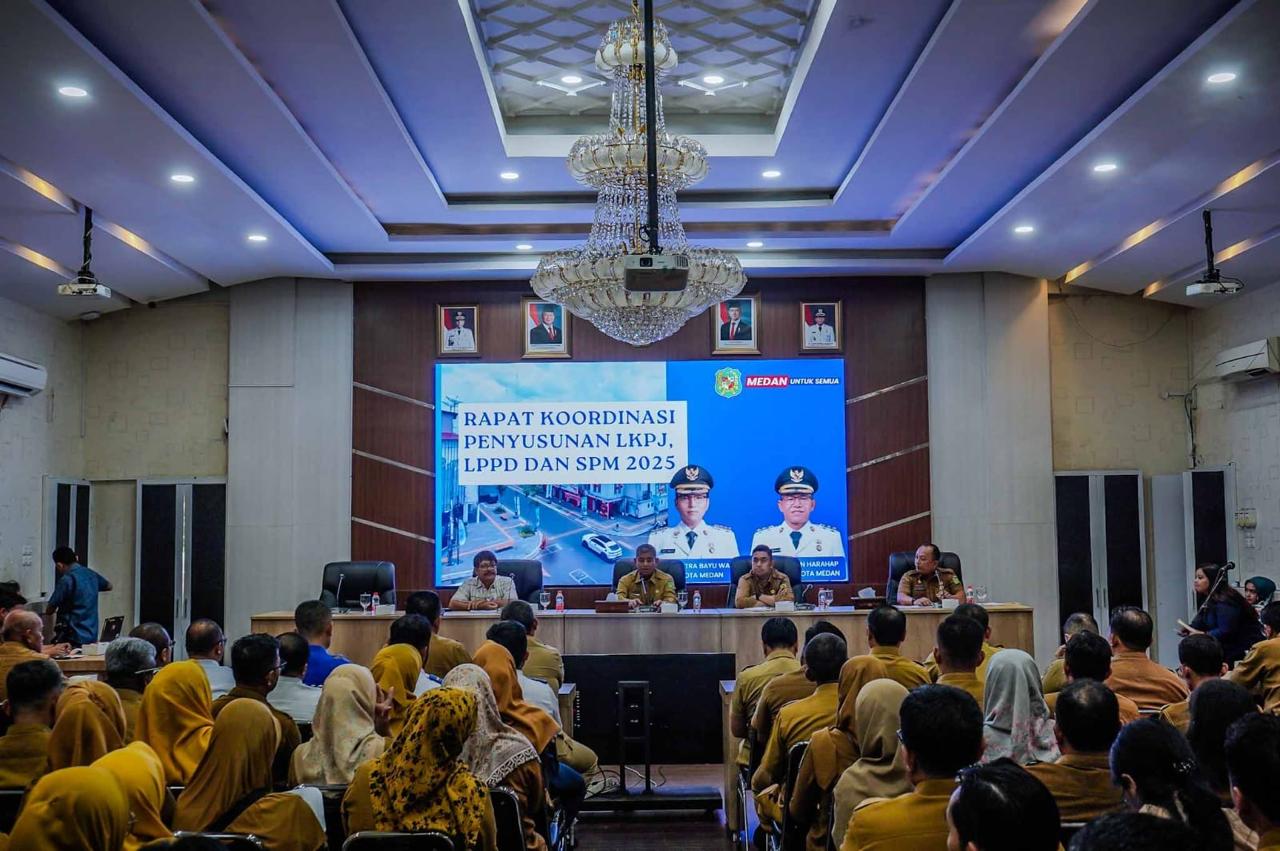 Penekanan itu disampaikan Wiriya saat memimpin Rapat Koordinasi (Rakor) Penyusunan Laporan Keterangan Pertanggungjawaban (LKPJ), Laporan Penyelenggaraan Pemerintahan Daerah (LPPD), Laporan Pelaksanaan Standar Pelayanan Minimal (SPM) 2025 di Ruang Rapat III Lantai IV Kantor Wali Kota Medan, Selasa (13/01/2026).