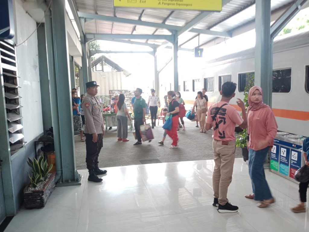 Personil Polres Pematangsiantar Laksanakan Pengamanan Angkutan Lebaran Tahun 2025 di Stasiun Kereta Api Siantar