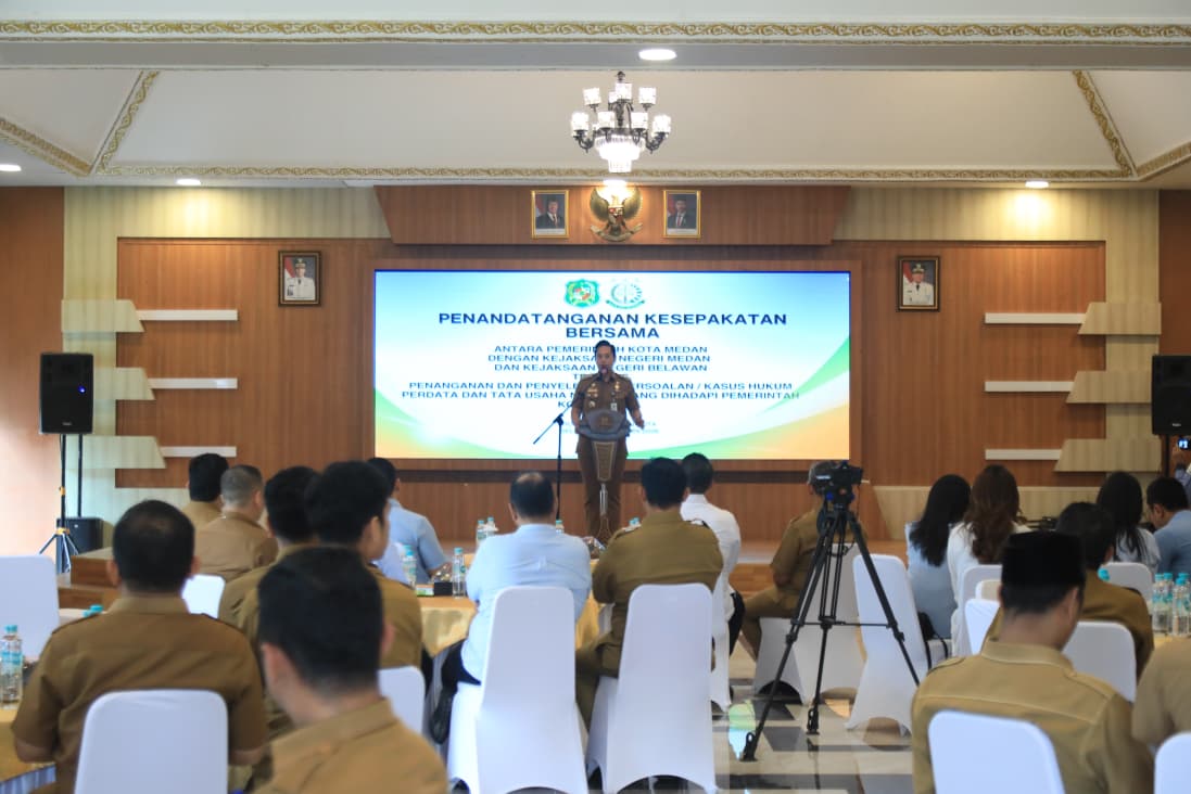 Kerja sama ini ditandai dengan penandatanganan Kesepakatan Bersama Antara Pemko Medan dengan Kejaksaan Negeri Medan dan Kejaksaan Negeri Belawan Tentang Penanganan dan Penyelesaian Persoalan/Kasus Hukum Perdata dan Tata Usaha Negara Yang Dihadapi Pemerintah Kota Medan, di Rumah Dinas Wali Kota Medan, Selasa (10/02/2026).