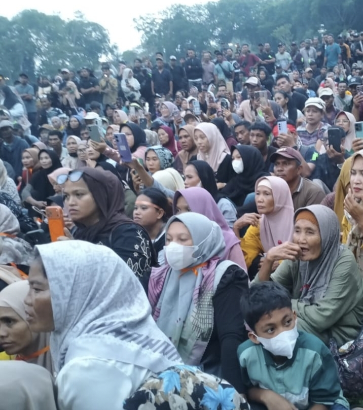 Usai menggelar aksi di Kantor DPRD Langkat, ratusan masyarakat pun bergeser ke Kantor Bupati Langkat untuk menyampaikan aspirasi mereka.(Adi)